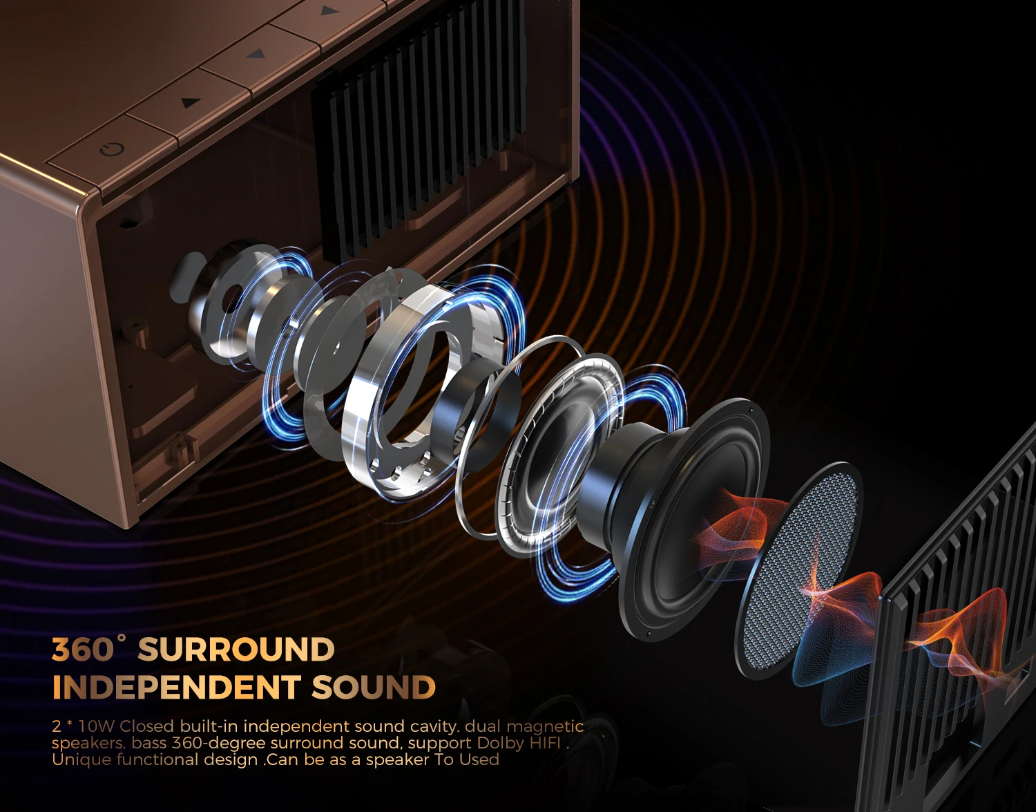 【 Dual 10W built-in speakers HIFI audio quality&300 inches large screen 】Room-Filling Sound & Image,connecting soundbar