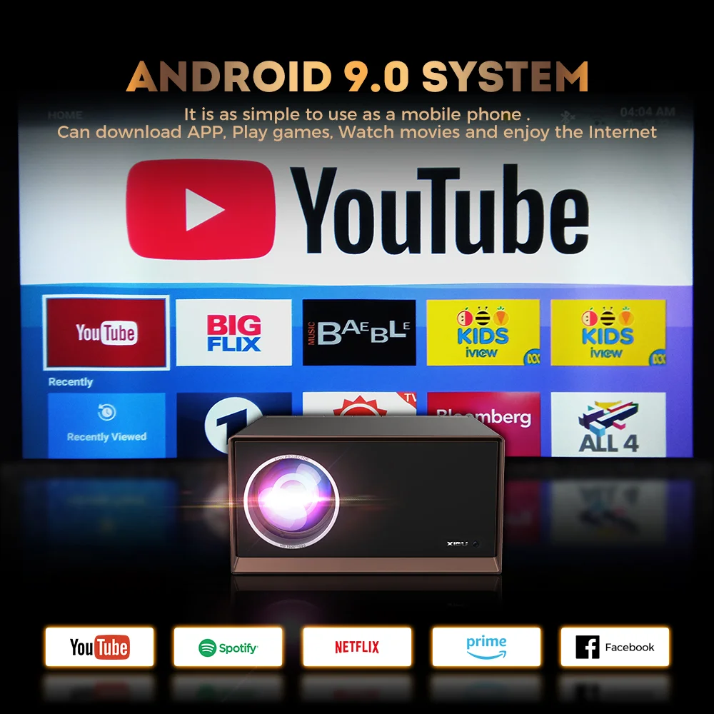 Supporting many kinds of stream app, you can update the app and reset system. Instead of your TV, enjoy bigger screen and smart projector system.
