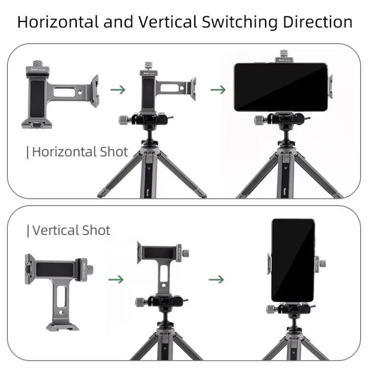 XILETU XJ-T8 Metal Phone Holder Clamp With Cold Shoe 1/4-inch Screw Hole & Arca-Swiss Compatible Base