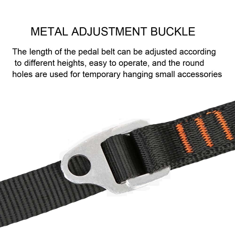 3. Metal adjustment buckle, the length of the pedal belt can be adjusted according to different heights, easy to operate, and the round hole is used for temporary hanging small accessories