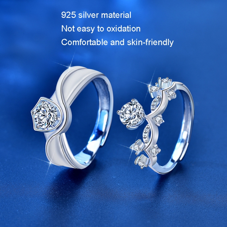 XJA011 Couple Ring Mosan Diamond S925 Silver Ring, Style: