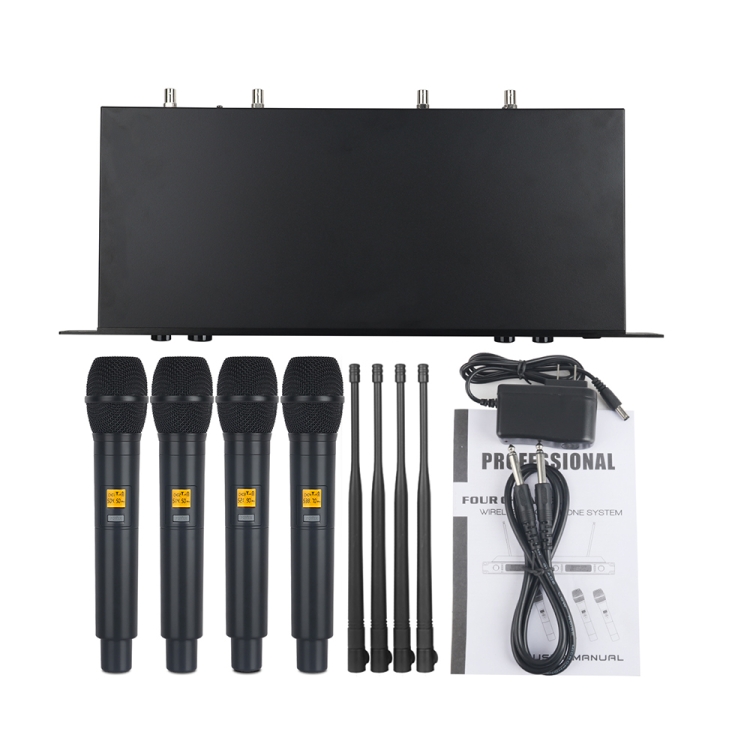 1. Professional UHF microphone system delivers clear amd lound audio signal and is much more stable than the VHF, 4-channel wireless microphone receiver, fixed frequency,superior anti-interference ability. Upgraded wireless signal acquisition, 4 antennas can be installed on the back of the receiver to enhance the received signal, ensuring high frequency stability and accuracy