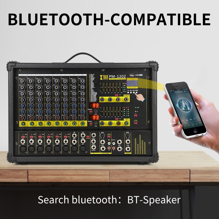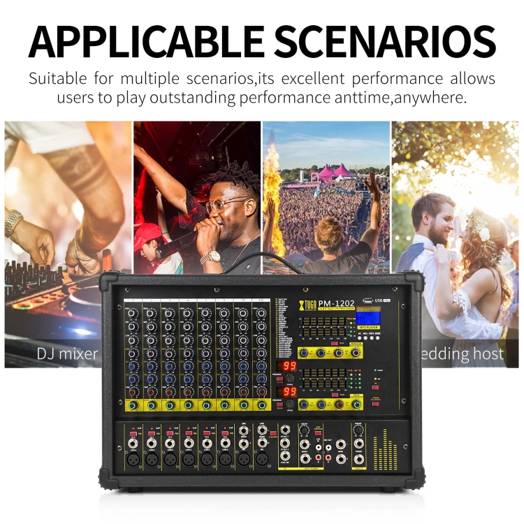 XTUGA PM1202 900W 10 Channel Stage Power Mixer 24Bit Multil-FX Processor Dual 99 DSP Effect DJ Amplifier
