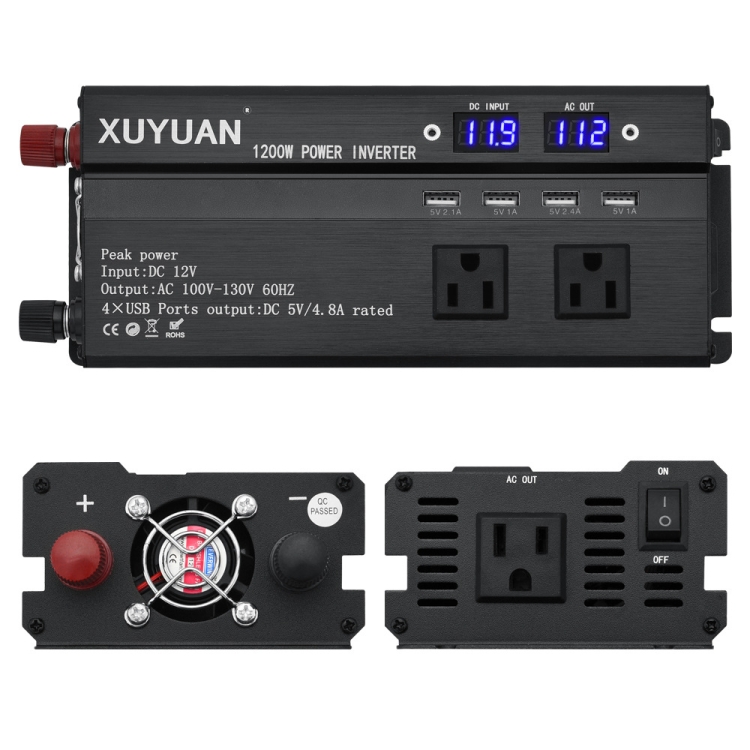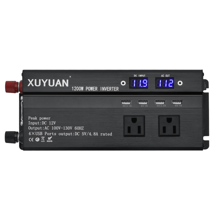 XUYUAN 1200W Car Inverter with LED Display Converter, US Plug