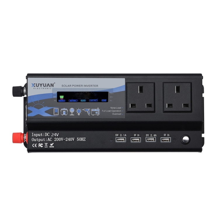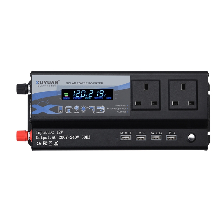 XUYUAN 6000W Car Inverter LED Colorful Atmosphere Light 4 USB Charging Converter, UK Plug