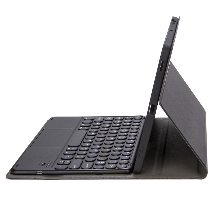 YA098B-A Detachable Lambskin Texture Round Keycap Bluetooth Keyboard Leather Case with Touch Control & Pen Slot & Stand