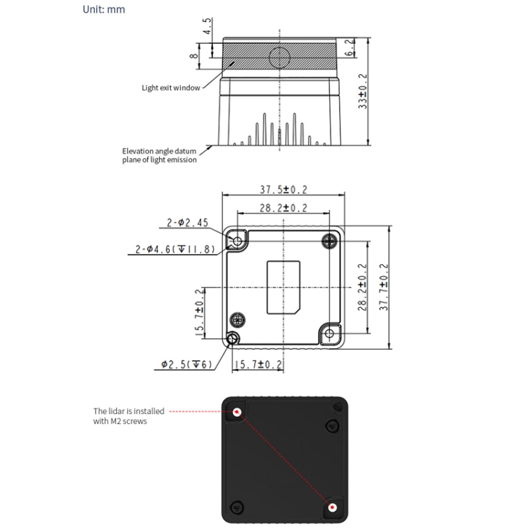 6. Laser emission pitch angle: 0.5°-2°