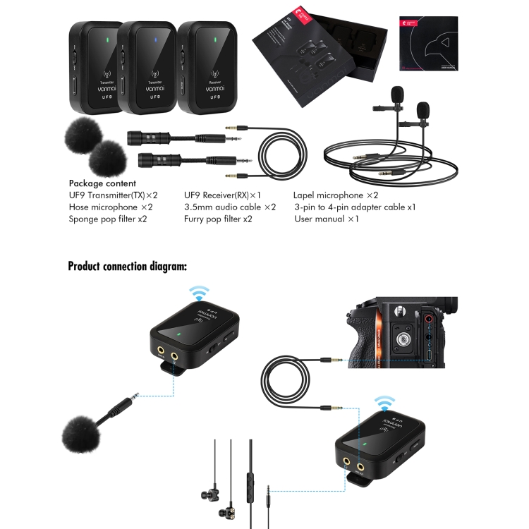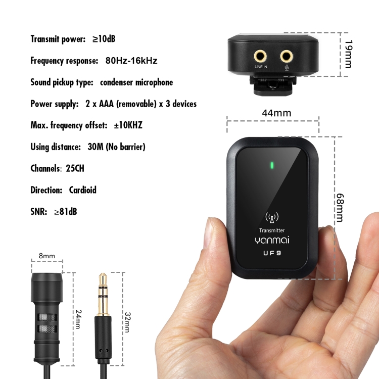 Yanmai UF9 Broadcast Wireless Lavalier Microphone Mini Clip-on Mic