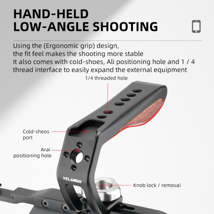 YELANGU LW-B01-3 Handheld Video Stabilizer Top Handle with Cold Shoes for LW-B01 Cage