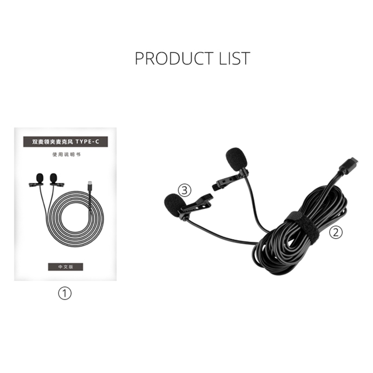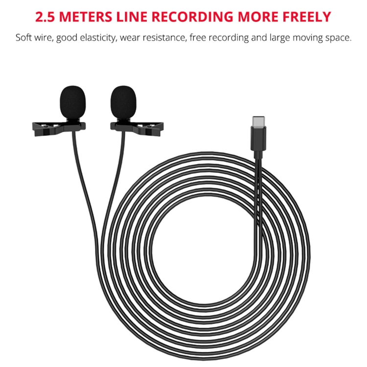 YELANGU MY3 Type-C Interface Live Broadcast Interview Mobile Phone Double Clip Lavalier Microphone, Length: 2.5m