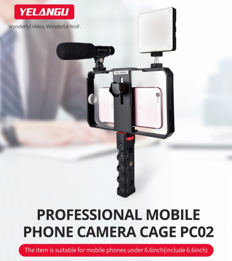 YELANGU YLG0901B Vlogging Live Broadcast Smartphone Plastic Cage Video Rig Filmmaking Recording Handle Stabilizer Bracket for iPhone, Galaxy, Huawei, Xiaomi, HTC, LG, Google, and Other Smartphones