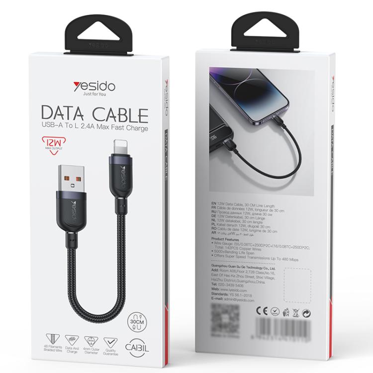 Yesido 12W 2.4A USB to 8 Pin Charging Data Cable