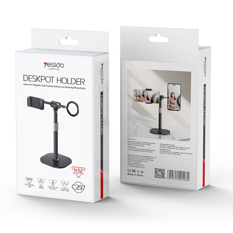 Yesido C297 Dual-use Live Broadcast Desktop Stand Metal Spring Clip / Magnetic Ring