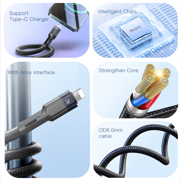 YESIDO CA107 1.2m 2.4A USB-C / Type-C to 8 Pin OD0.6 Charging Data Cable