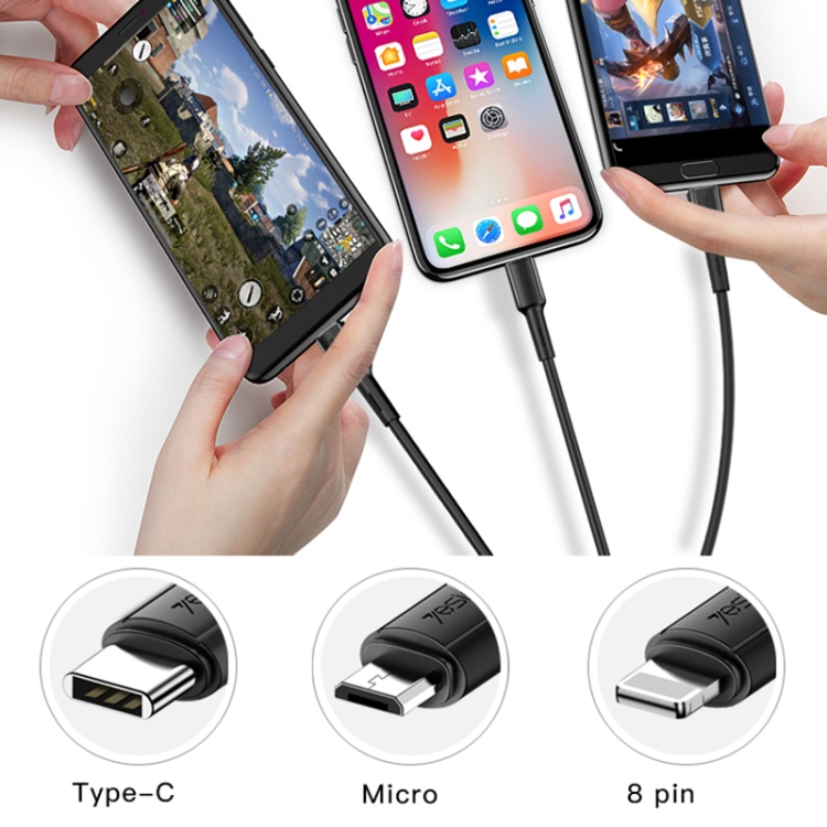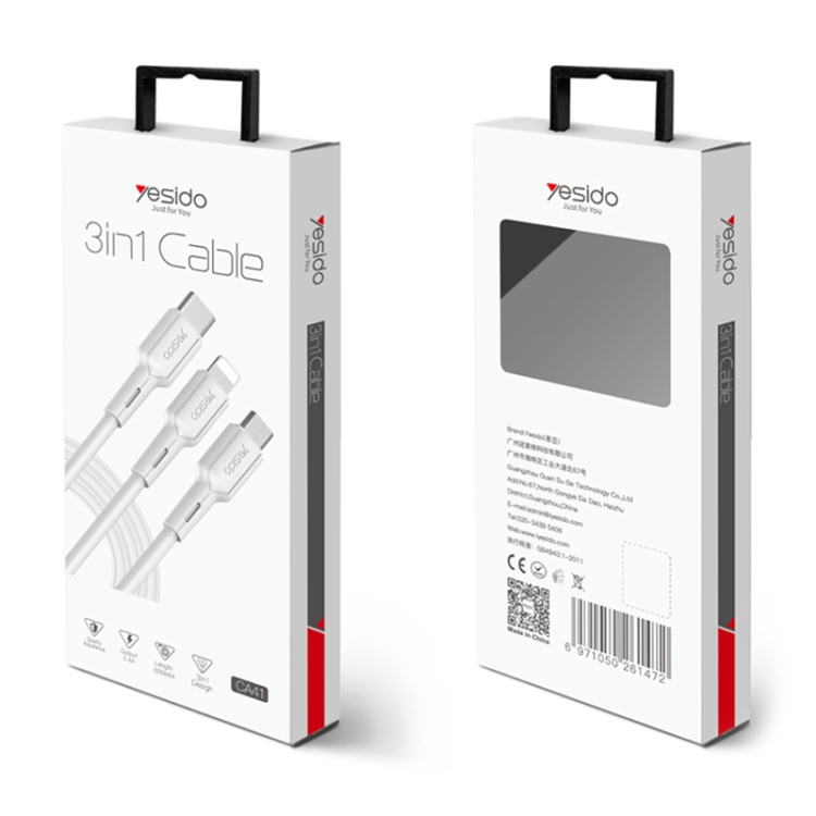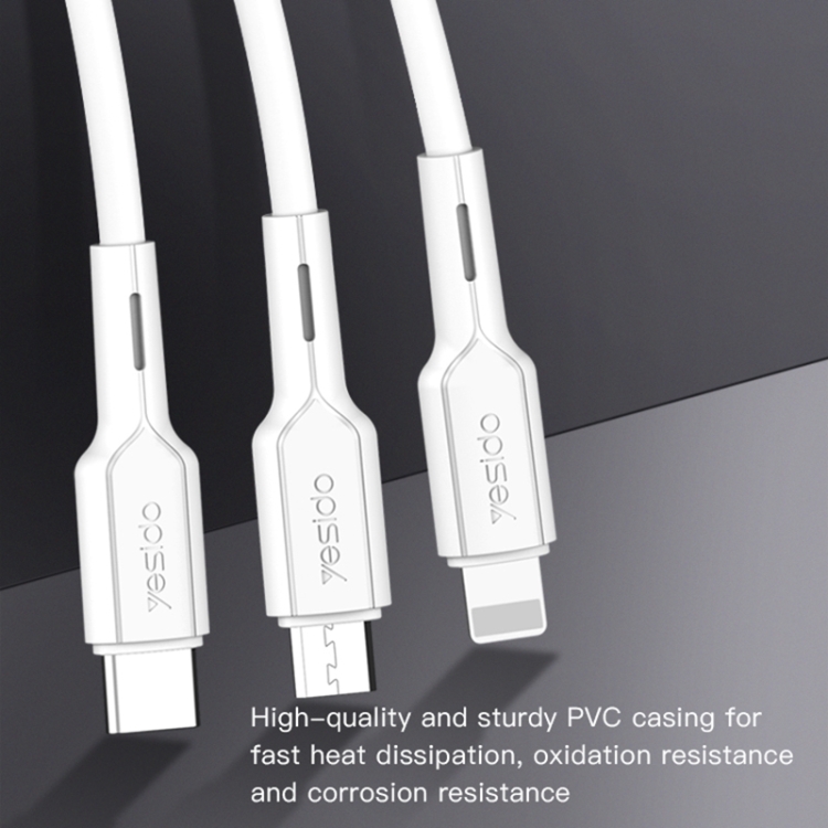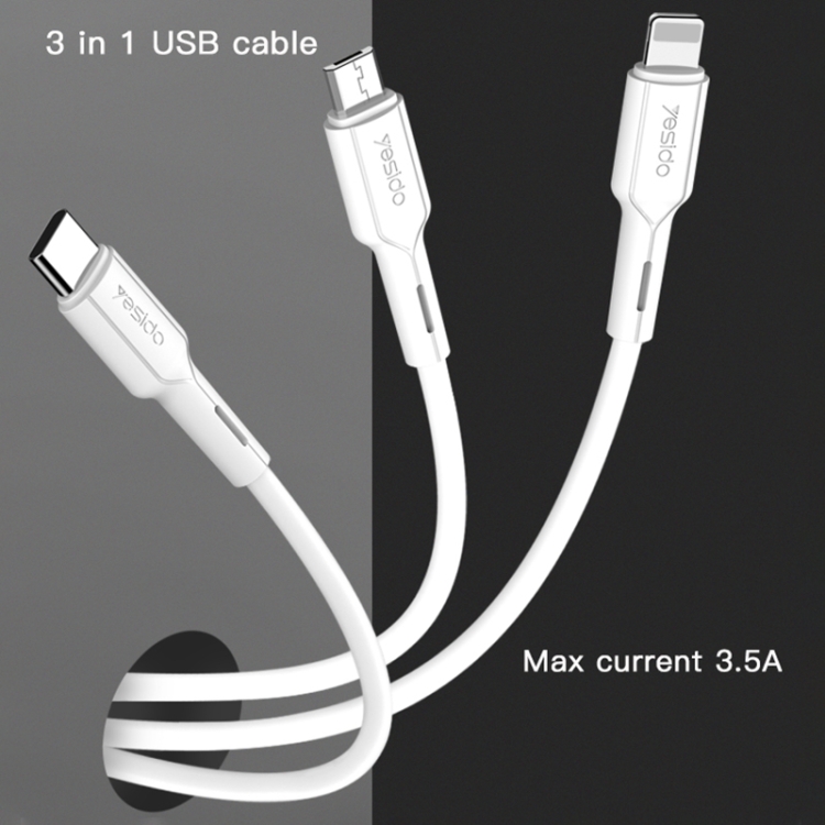 Yesido CA41 5A USB to 8 Pin + Micro + USB-C / Type-C Charging Cable, Length: 1m, CA41 (White), CA41 (Black)