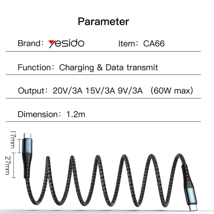 Yesido CA66 3A PD66W USB-C / Type-C to USB-C / Type-C Charging Cable, Length: 1.2m