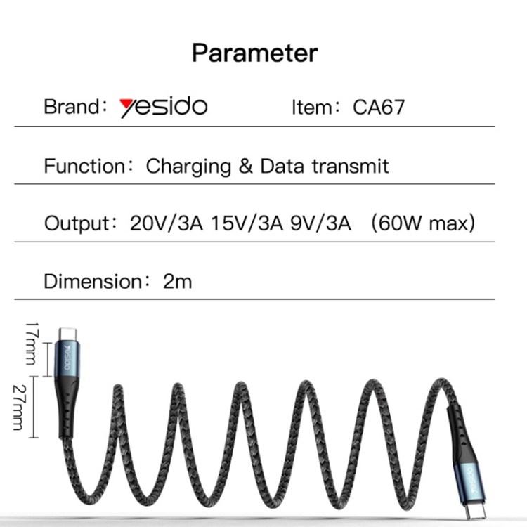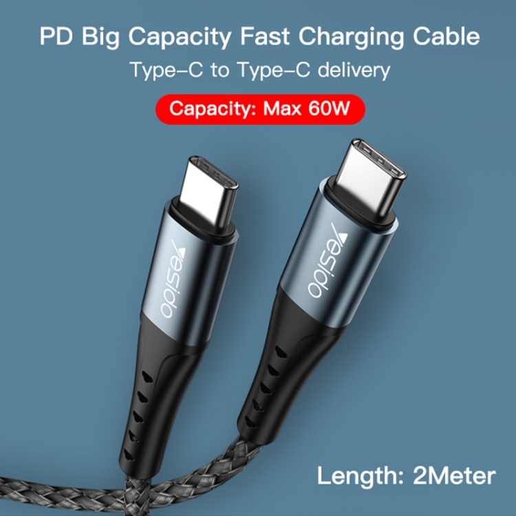 Yesido CA67 3A PD66W USB-C / Type-C to USB-C / Type-C Charging Cable, Length: 2m