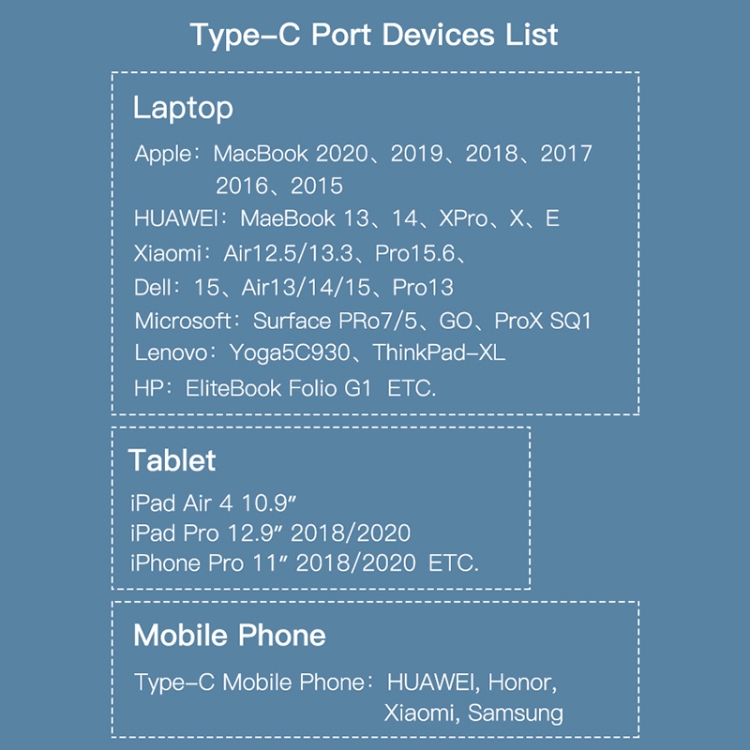 CA22 Micro USB, CA22 8 Pin, CA26 Micro USB (White), CA26 Micro USB (Black), CA26 Type-C (White), CA26 Type-C (Black), CA26 8 Pin (White), CA26 8 Pin (Black), CA36 Micro USB, CA36 Type-C, CA36 8 Pin, CA41 (White), CA41 (Black), CA42 8 Pin (White), CA42 8 Pin(Black), CA42 Micro USB (White), CA42 Micro USB (Black), CA42 Type-C (White), CA42 Type-C (Black), CA50 Micro USB, CA50 Type-C, CA50 8 Pin, CA56, CA57 8 Pin, CA57 Micro USB, CA57 Type-C, CA60, CA62 Micro USB, CA62 Type-C, CA62 8 Pin, CA63 8 Pin, CA63 Micro USB, CA63 Type-C, CA64, CA65, CA68, CA71 8 Pin, CA71 Micro USB, CA66, CA67, CA71 Type-C, CA72 Type-C, CA97 Type-C, CA97 Micro USB