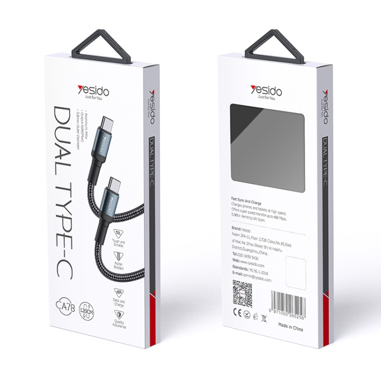 Yesido CA78 PD66W USB-C / Type-C to USB-C / Type-C Charging Cable, Length: 1.2m