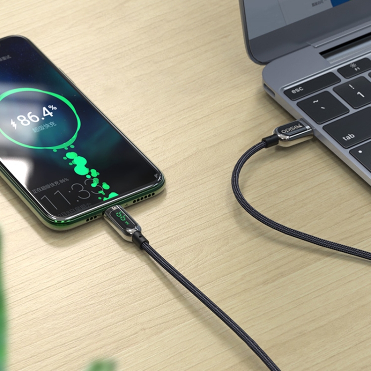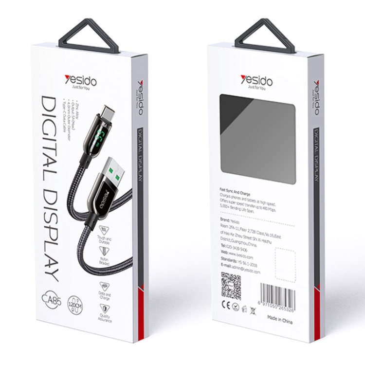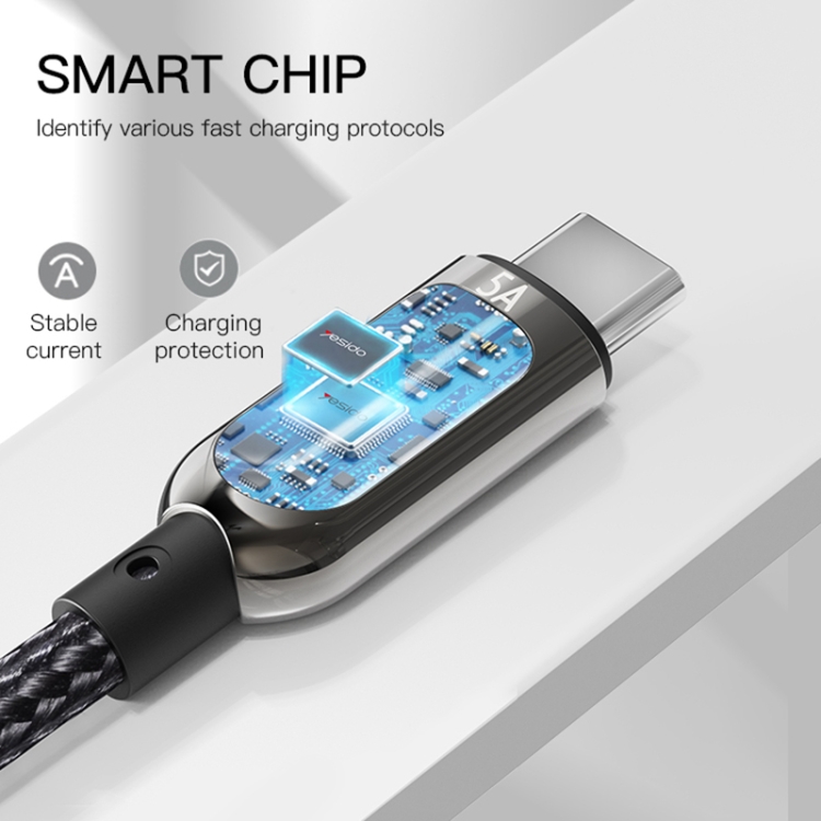 Yesido CA85 5A 66W USB to USB-C / Type-C Digital Display Fast Charging Cable, Length: 1.2m
