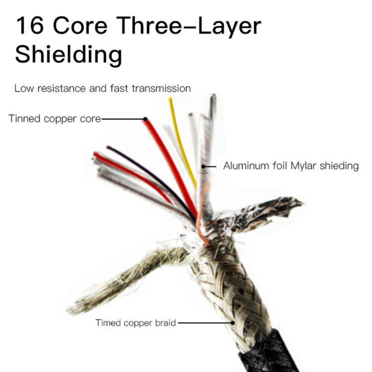 3. Pure copper wire core, increase the conduction area, reduce resistance, and increase charging speed.