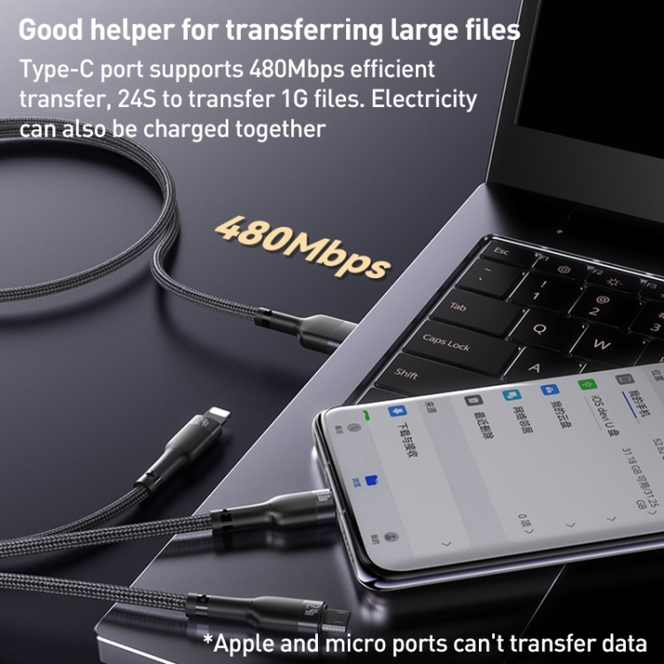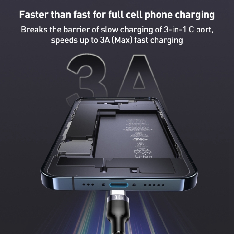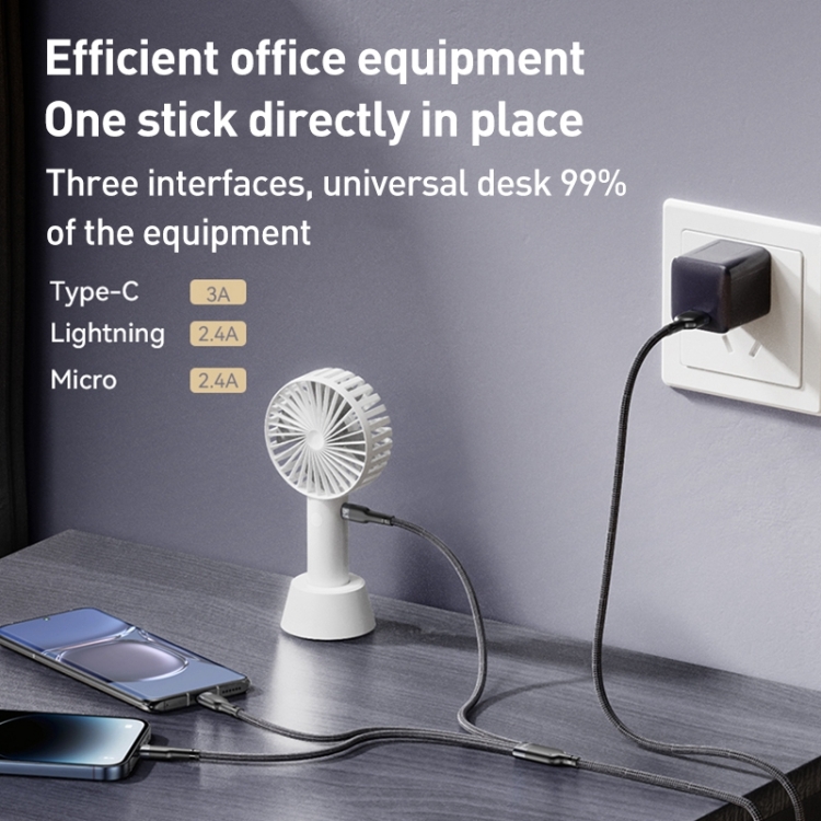 Yesido CA91 3A 3 in 1 USB to 8 Pin+USB-C/Type-C+Micro USB Aluminum Alloy Data Cable, Length: 1m