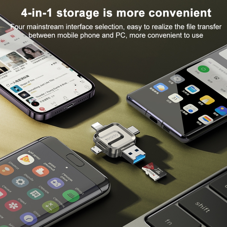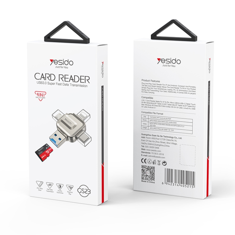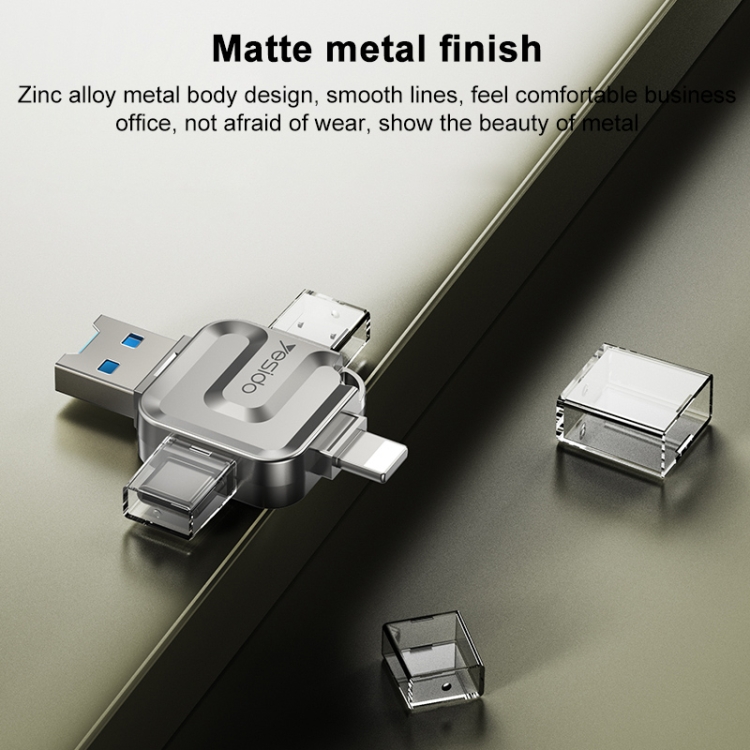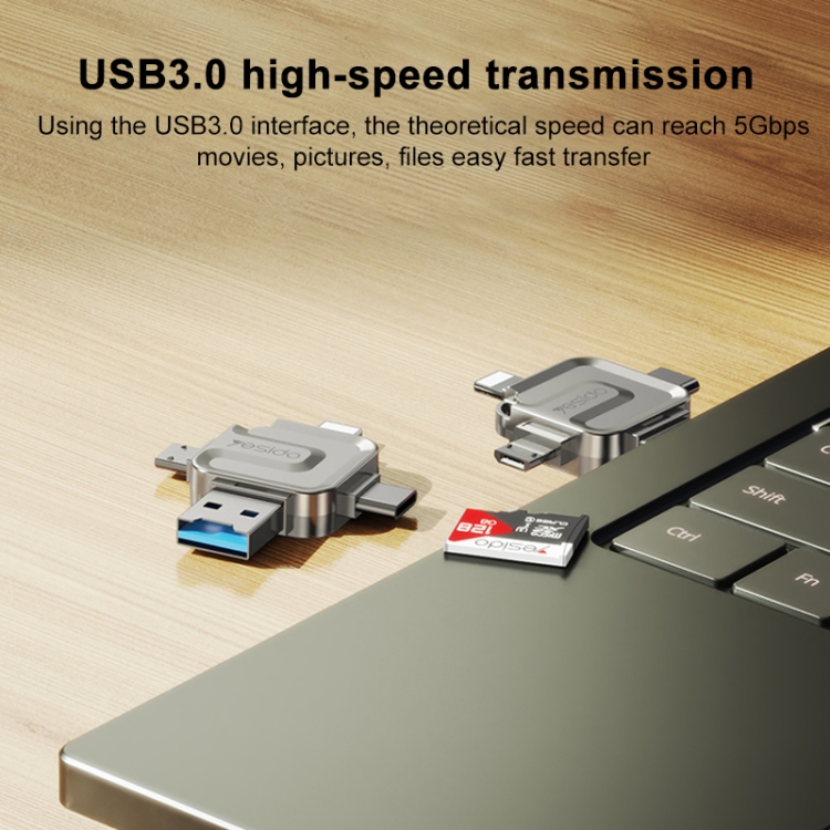 Yesido GS23 USB 3.0 to USB-C / Type-C, Micro USB, 8 Pin 4 in 1 Card Reader