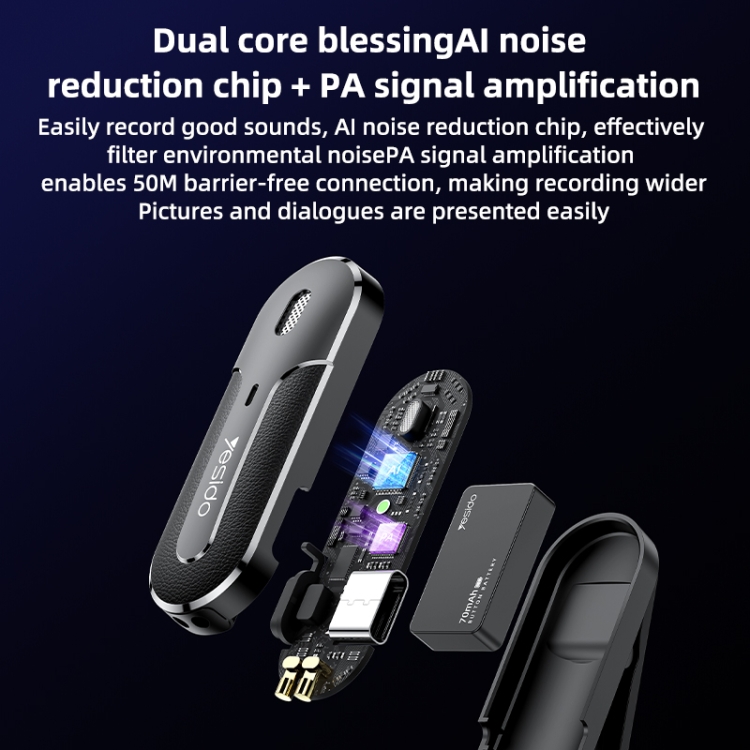 YESIDO KR16 2 in 1 Wireless Lavalier Microphone 8 Pin Receiver with Charging Box