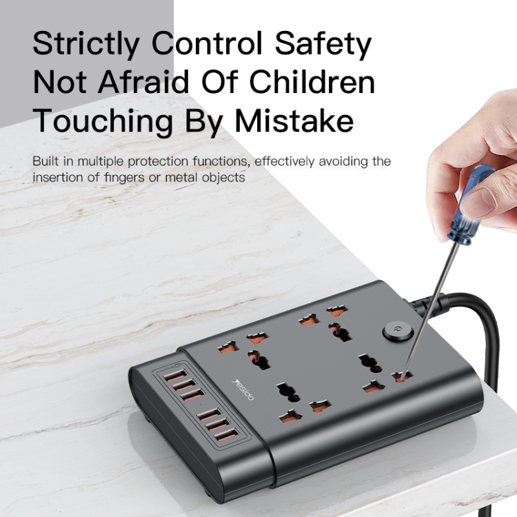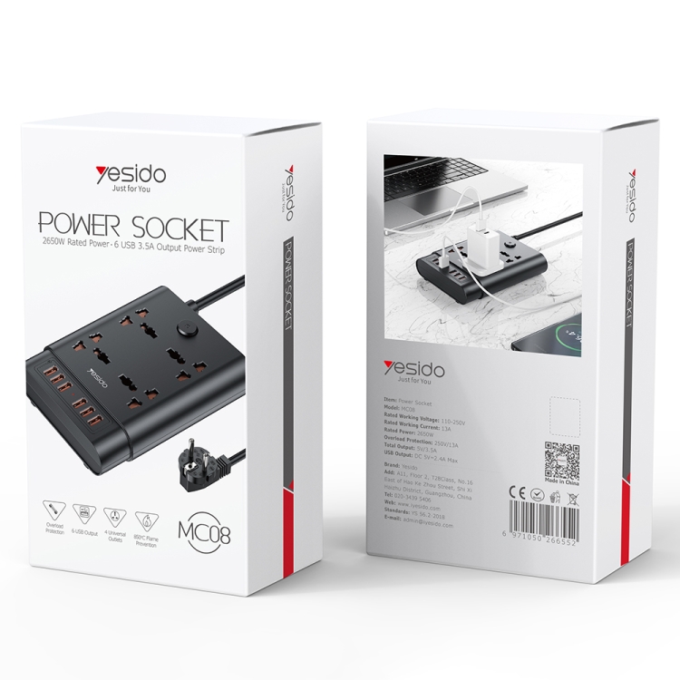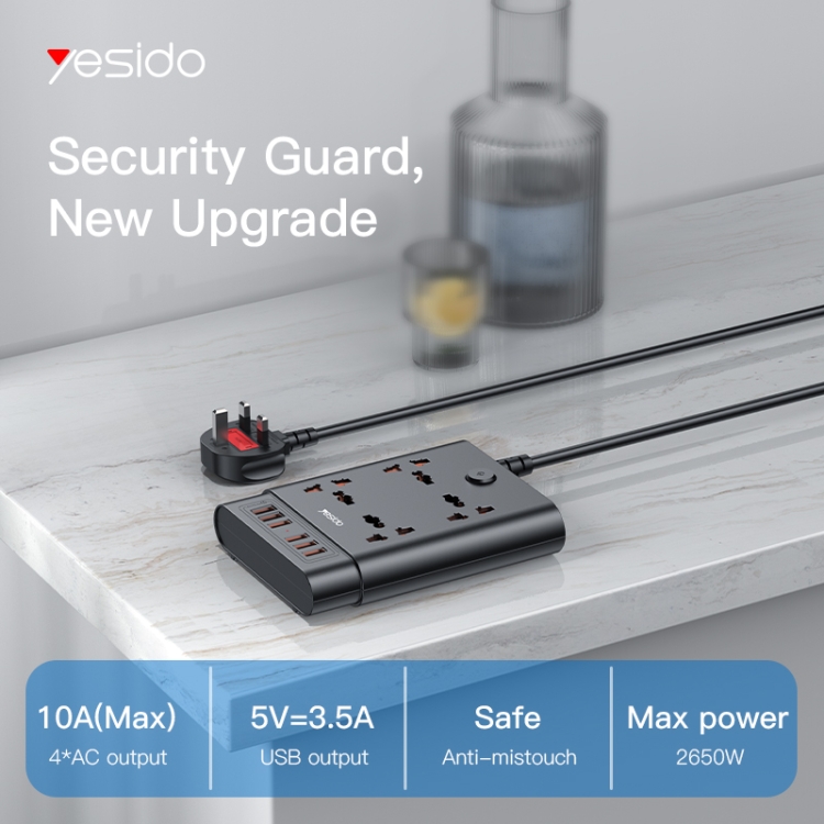Yesido MC-08 4 Ports + 6 USB Ports 2650W Multi-functional High Power Socket