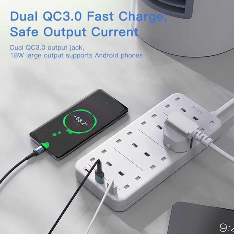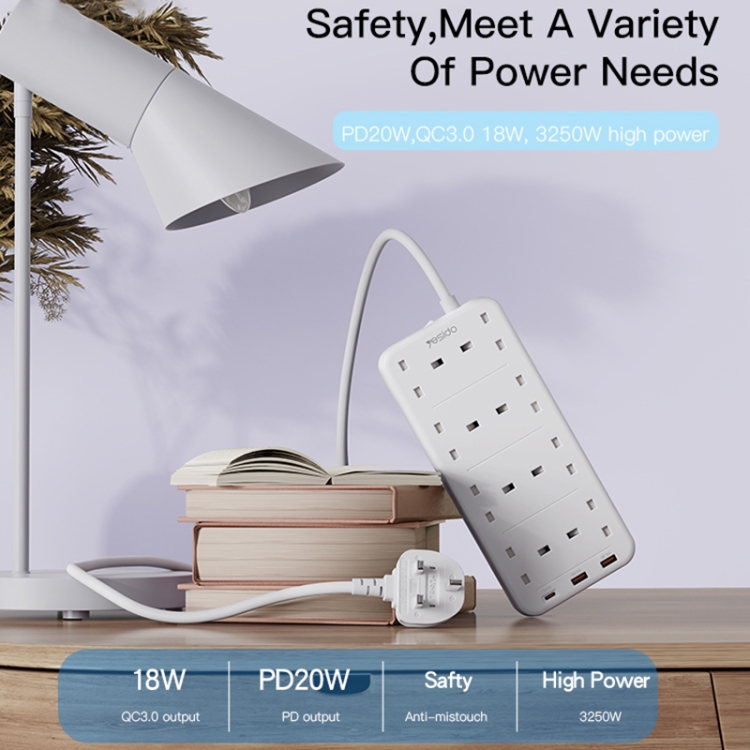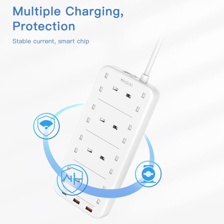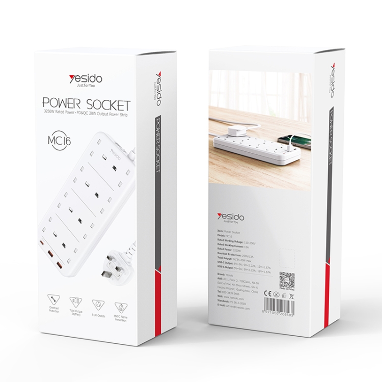 Yesido MC-16 8 Plugs + PD 20W+2 QC3.0 Ports 3250W High Power Fast Charging Socket