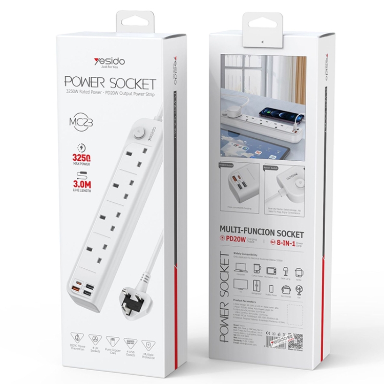 Yesido MC23 3m Home High Power Fast Charging Socket, EU Plug