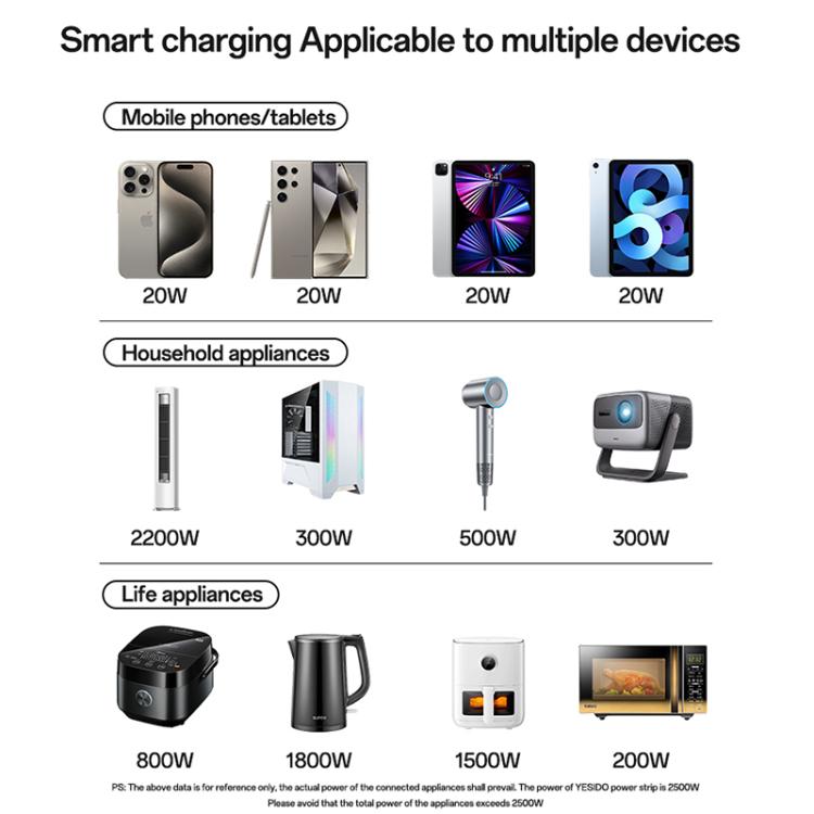 Yesido MC37 40W 6 In 1 Dual Type-C and Dual USB-A with 2 Socket Desktop GaN Power Socket Power Strip