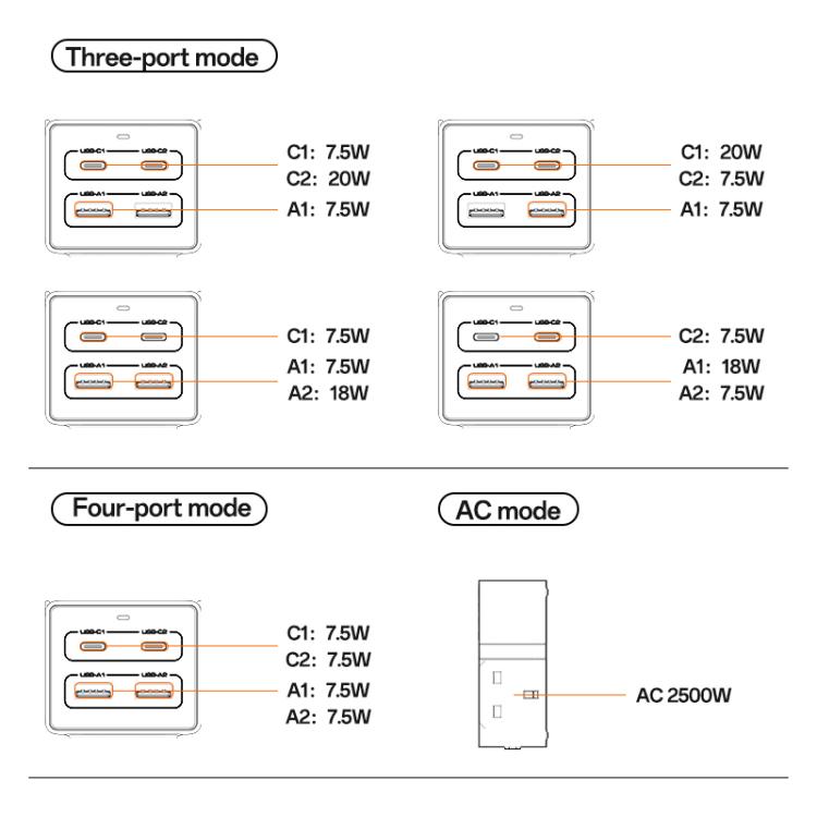 3. USB-A1/USB-A2: 18W/18W
