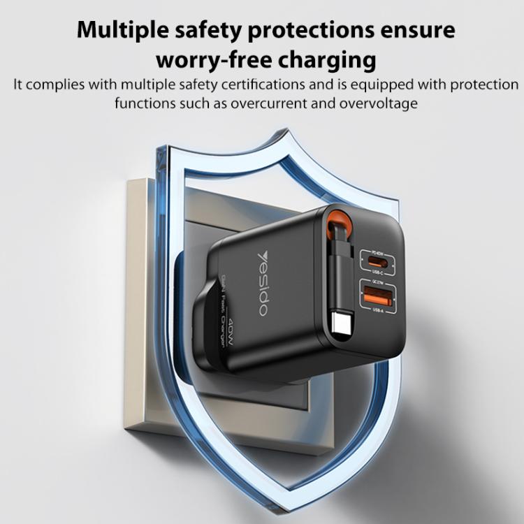 Output 1: TYPE-C/Cable: 5V/3A, 9V/3A, 12V/2.91A, 15V/2.6A, 20V/2A (40W Max)