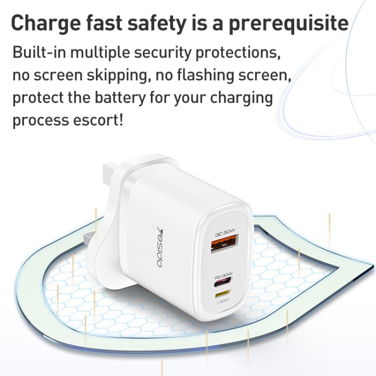 Yesido YC51 30W USB-C / Type-C + USB + 8 Pin Travel Charger with 1m Type-C to 8 Pin Cable, UK Plug