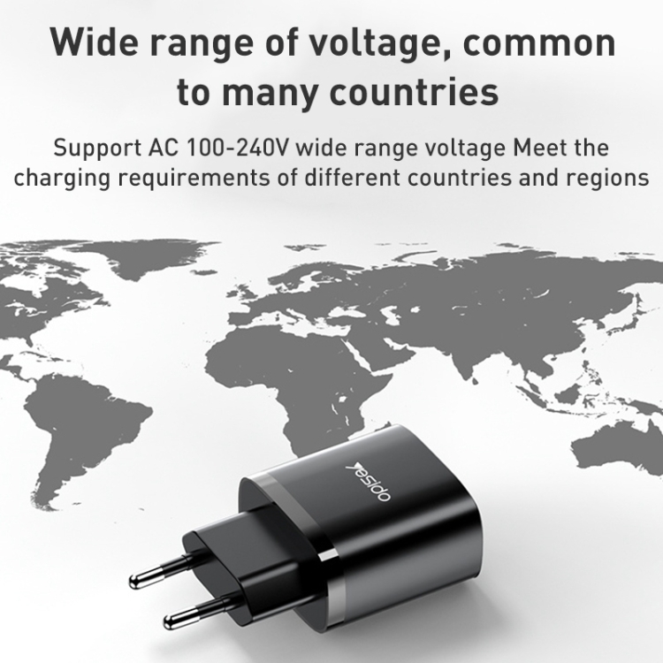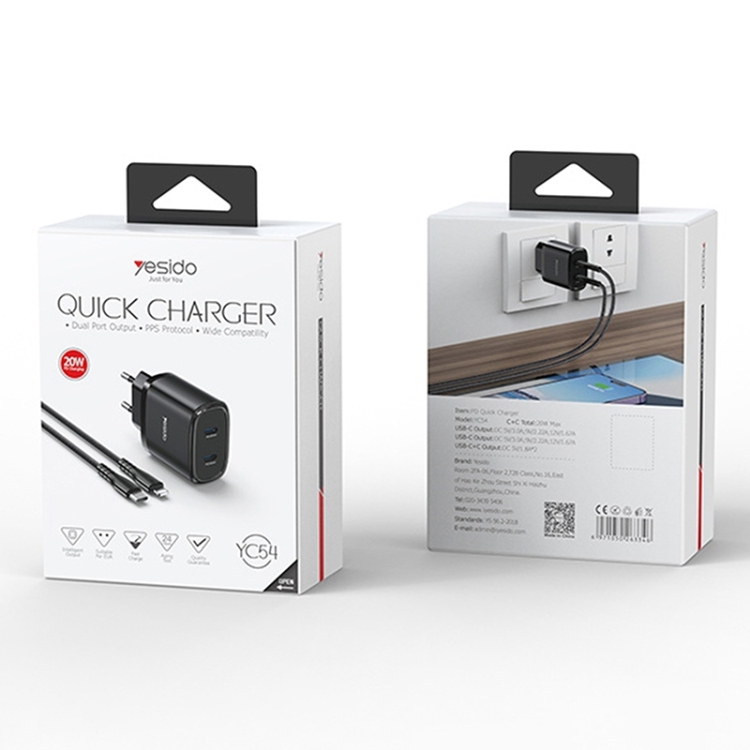 Yesido YC54 Dual USB-C / Type-C Travel Charger with 1m USB-C / Type-C to 8 Pin Cable, EU Plug