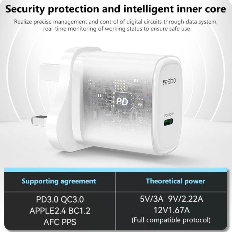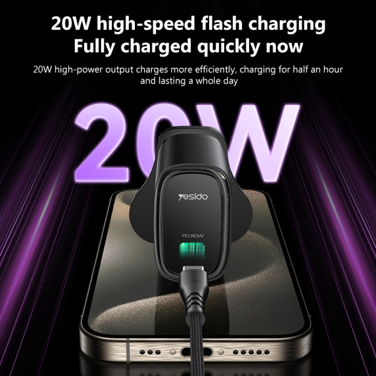Yesido YC76L PD 20W USB-C / Type-C Port Quick Charger with Type-C to 8 Pin Cable, UK Plug