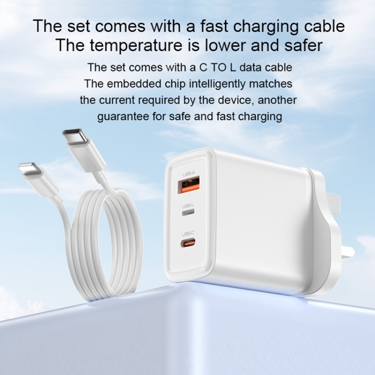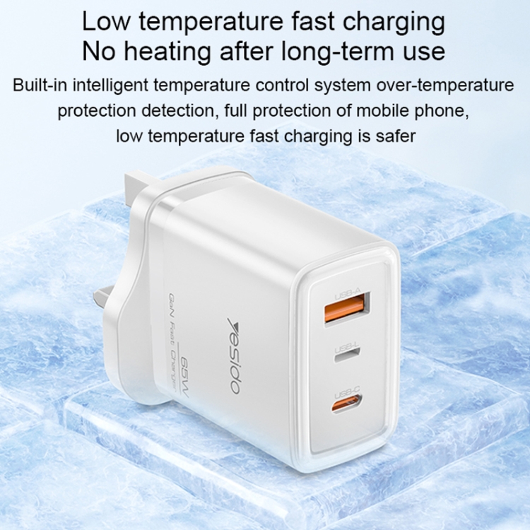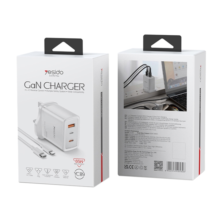 Yesido YC89 65W Type-C, USB, 8 Pin Reverse GaN Fast Charger with Type-C to 8 Pin Cable