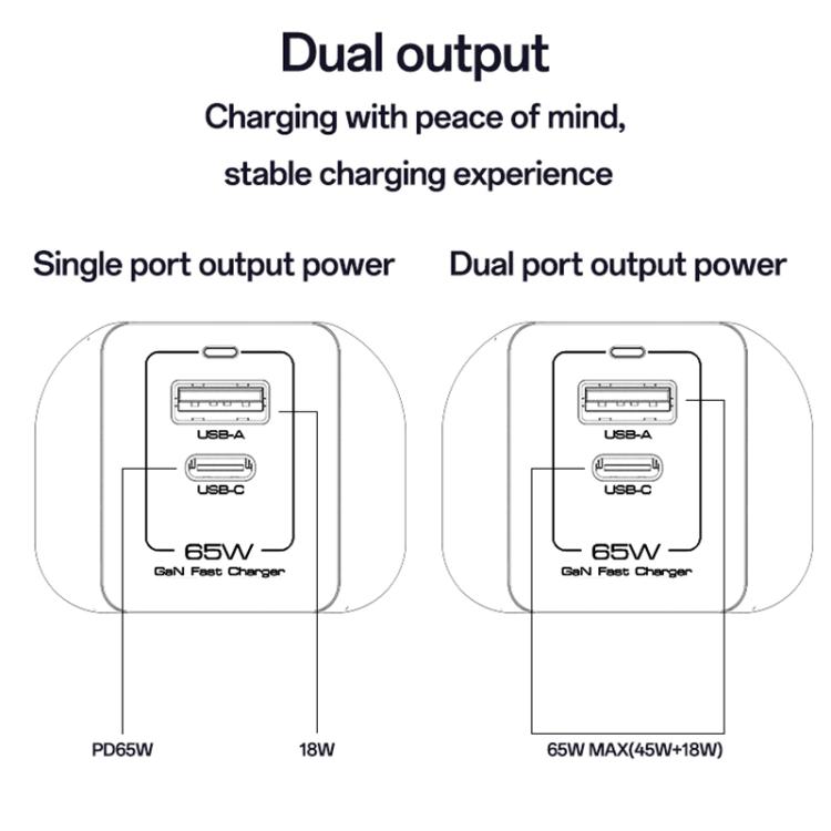 USB-C+USB-A: 45W+18W, total power 65W (Max)