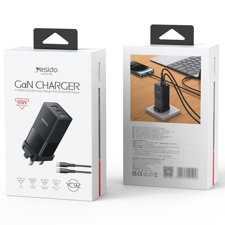 Yesido YC92 65W USB and USB-C / Type-C Dual Port GaN Fast Charger Set