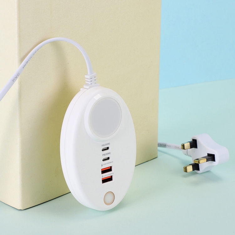 YF-106 USB- C / Type-Cx2+USBx2 Oval PD Socket Phone Charger with Light