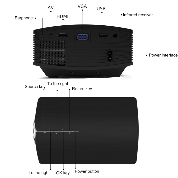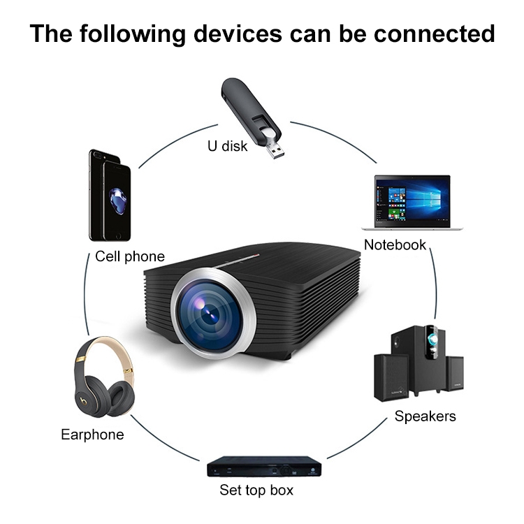 YG500 1200 LUX 800*480 LED Projector HD Home Theater, Support HDMI & VGA & AV & TF & USB