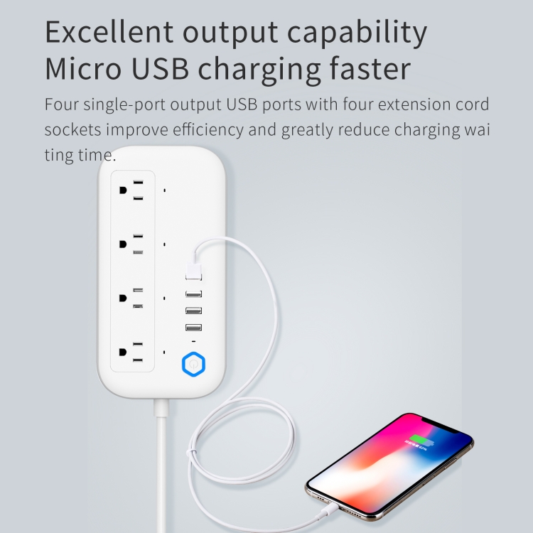 YPS11 Four Holes + 4 x USB Multi-purpose WiFi Smart Power Strip, US Plug
