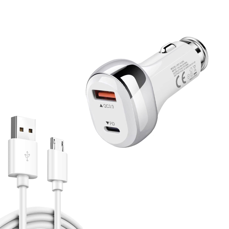 YSY-312PD QC3.0 18W USB + PD 20W USB-C / Type-C Car Charger with USB to Micro USB Data Cable