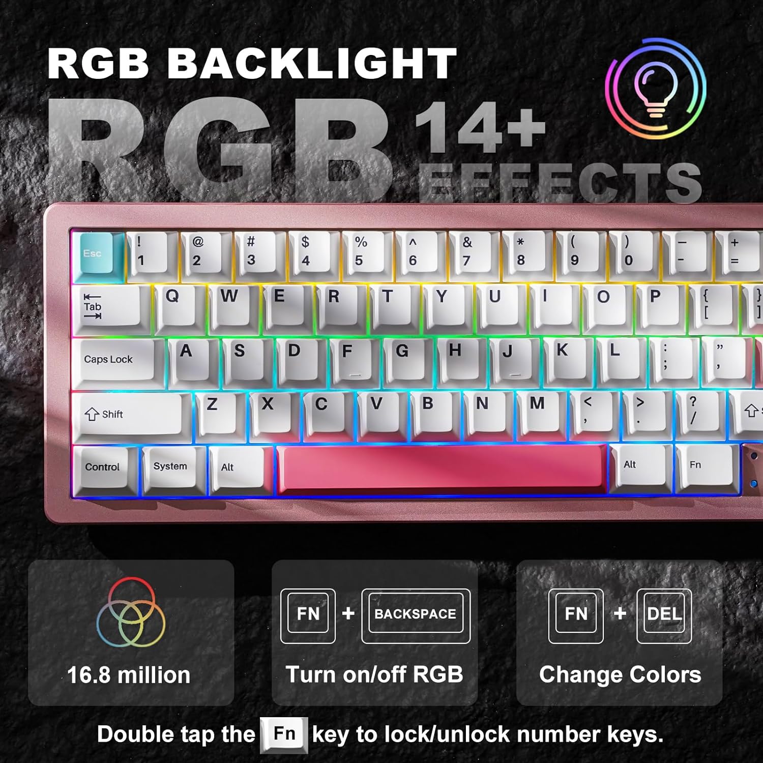 YUNZII AL66 Wireless Mechanical Keyboard,65% Knob Control Aluminum Gaming Keyboard BT/2.4G/Wired Hot Swappable Pre-lubed Switches, Gasket Mounted RGB Keyboard for Win/Mac(Milk Switch, Pink)