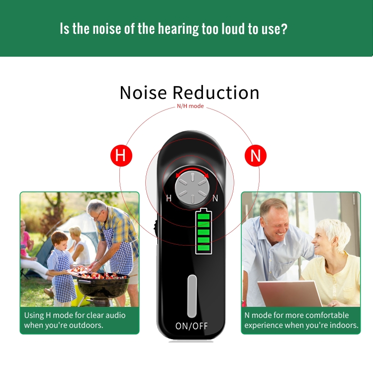 2. Noise reduction: Input noise is less than 30dB, harmonic distortion is less than 5%, N/H mode switch and microphone and earphone separation design help reduce noise. Use H mode outdoors for clear audio and indoors in N mode for a more comfortable experience.