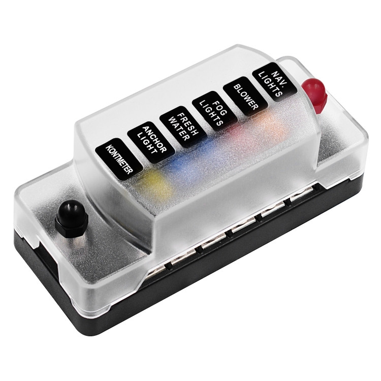 ZH-978A1 FB1901 1 In 6 Out 6 Ways Independent Positive Negative Fuse Box with 12 Fuses for Auto Car Truck Boat