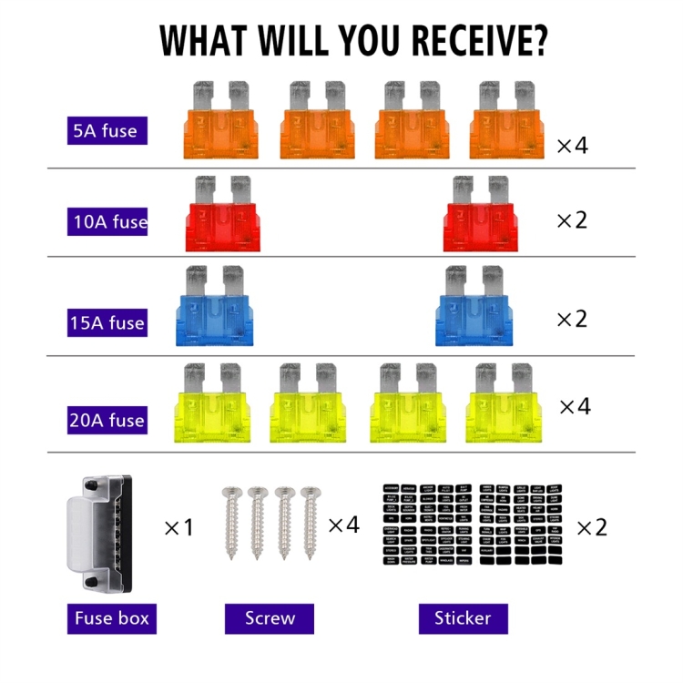 7. Fuse Type: Accepts ATO or ATC fuses from 1A to 20A