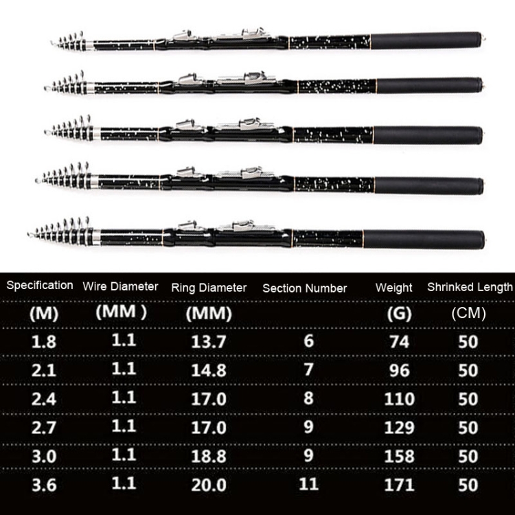 5. Weight: about 74g for 1.8m, about 96g for 2.1m, about 110g for 2.4m, about 129g for 2.7m, about 158g for 3.0m, about 171g for 3.6m