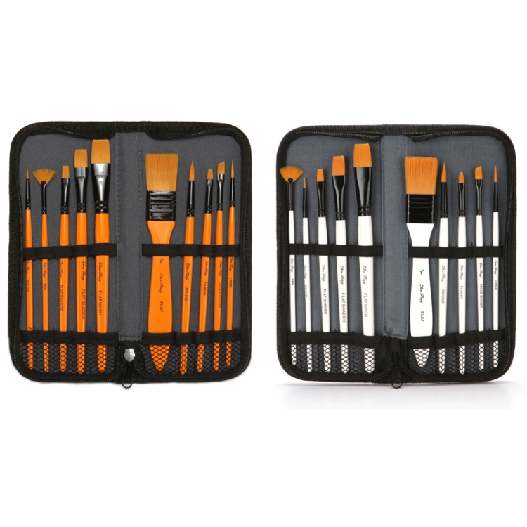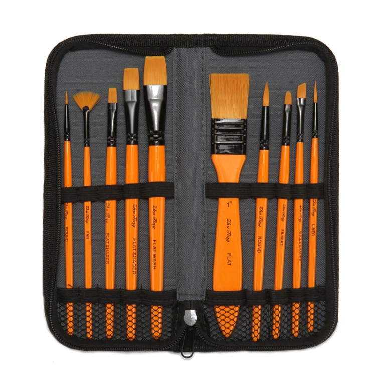 ZHU TING 10 In 1 Wooden Pole Nylon Wool Watercolor Pen And Board Brush Fan Shaped Painting Pen Set With Cloth BagZHUTING